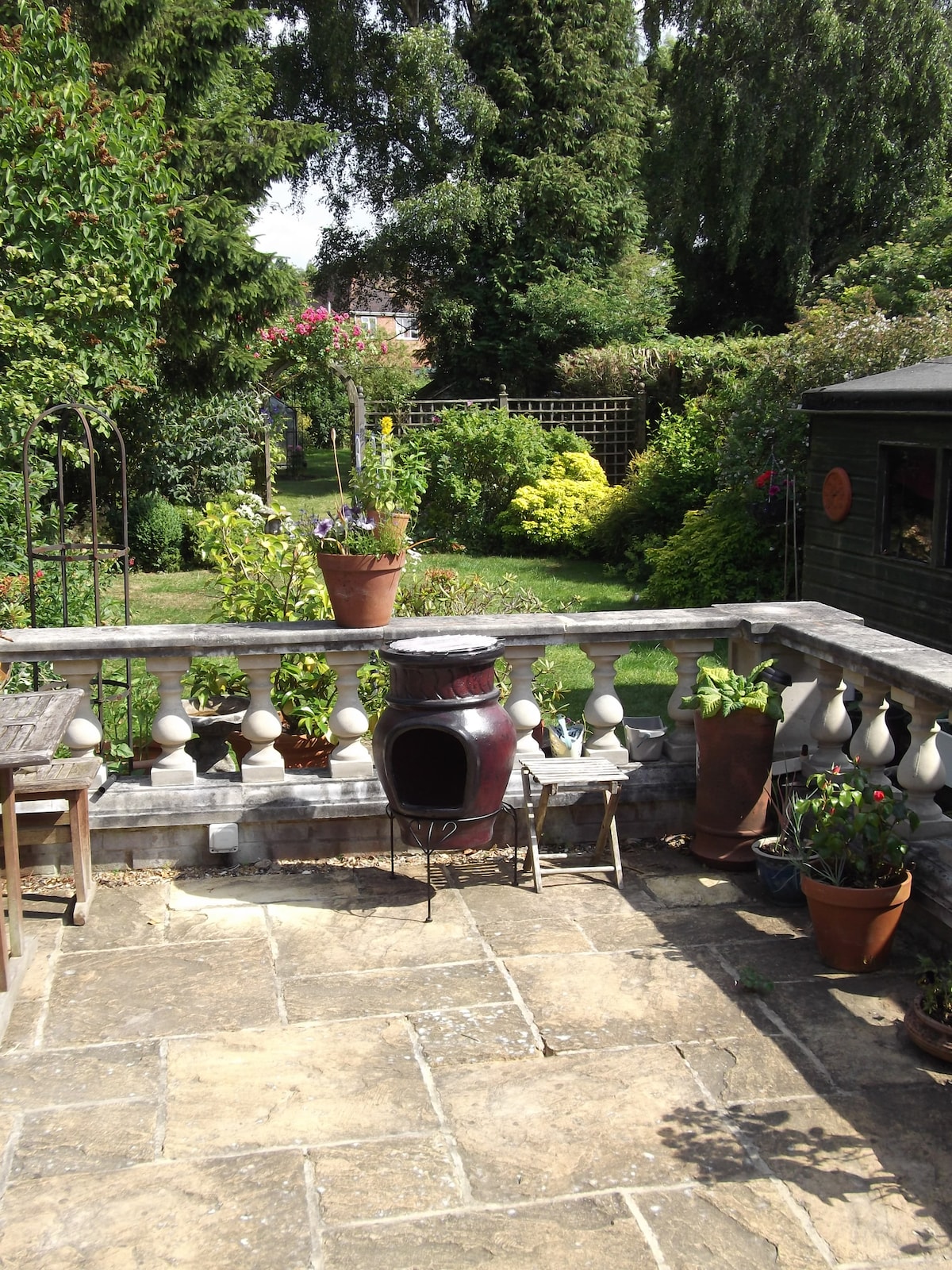 Relax or work in this stylish apartment with private courtyard garden and vintage summerhouse * NO additional cleaning fee * 1st floor apartment with free parking * Private entrance * Country views * Wi-Fi * Self check in * 6ft super king bed * Heating * Smart TV * Plus a summerhouse * 1 hour train from London * Local pub/food 10 minute walk * Country walks * River 1 mile for boating/walks * Not suitable for pets or children * Please note EV charging is NOT permitted on the property*