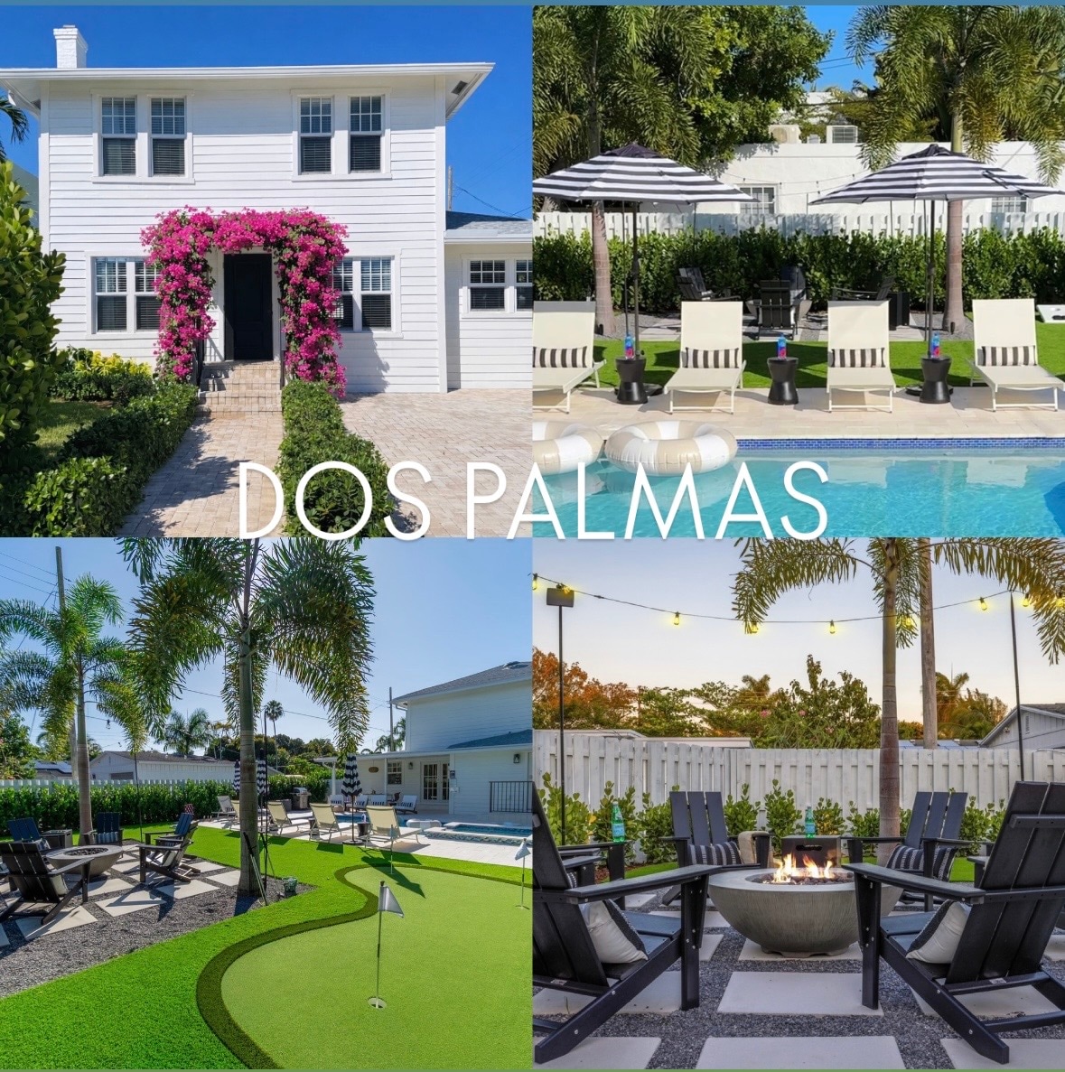 Dos Palmas - ը նոր վերանորոգված և նախագծված շքեղ կարճաժամկետ վարձակալություն է ։ ԱՌԱՆՁՆԱՀԱՏԿՈՒԹՅՈՒՆՆԵՐ - Ջեռուցումով, աղի ջրով լողավազան և ջակուզի – 3 անցք ունեցող գոլֆի դաշտ - Ադիրոնդակի նստատեղով կրակարան - 6 լողավազանի մոտ գտնվող լաունջ աթոռ ՝ հովանոցներով - Լողավազանի մոտ գտնվող նամակագրության նստատեղ - Բացօթյա ճաշասենյակ - Բացօթյա բակային խաղեր - Չժանգոտվող պողպատից 4 այրիչով գազի մանղալ - Գուրման խոհարարների խոհանոցը - Բարերի տարածք ՝ ներկառուցված գինու հովացուցիչով + խմիչքի սառնարան - Starbucks սուրճ + Tazo թեյի կայան - Սեղանի խաղեր