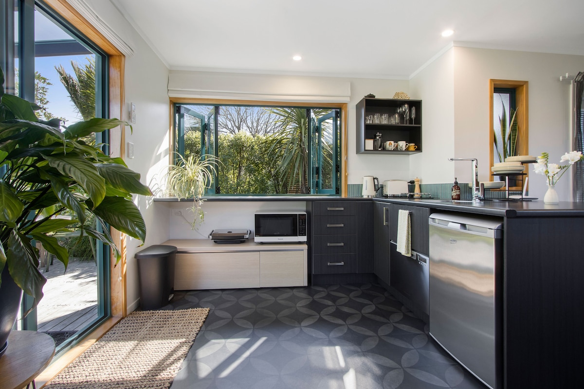 Հմայիչ, մտածված դիզայնով տնակ ՝ կատարյալ զույգերի կամ միայնակ ճանապարհորդների համար, որոնք փնտրում են հանգիստ, խաղաղ հանգիստ ։ Հանգստացեք տախտակամածի վրա, վառեք խորովածը, խմիչք լցրեք և վայելեք կիվիի հանգիստ ապրելակերպը ։ Երբ արևը մայր մտնի, սահեք դեպի բացօթյա լոգարան և թույլ տվեք, որ աշխարհը որոշ ժամանակ դանդաղի ։ Այս պարզ, հարմարավետ տնակը իդեալական է նրանց համար, ովքեր գնահատում են արկածները և մինիմալիստական ապրելակերպի գեղեցկությունը ։ Ընդամենը մի կարճ զբոսանքը տանում է դեպի լողափ և «Կորուսյալ գարուն »։