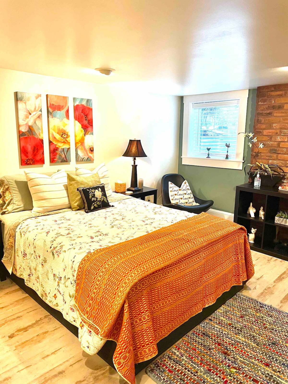 1910 թվականի արհեստավոր Պորտլենդի Միսսիսիպի թաղամասի սրտում ։ Ոտքով հեռավորություն դեպի բարեր և ռեստորաններ և Max թեթև երկաթուղուց ընդամենը երկու թաղամաս հեռավորության վրա ։ Սենյակը նկուղում է, բոլորովին նոր է և ներառում է սաունա, թվային պրոյեկտոր, բացվող էկրան, մահճակալ-պահարան, լվացքի մեքենա/չորանոց, սպասք լվացող մեքենա և ամբողջական խոհանոց։ Ապահով և մասնավոր մուտքը տան կողքից երկու կողպված դռների միջով է ։ Երեք հոգուց բաղկացած մեր փոքր ընտանիքը և մի կատու ապրում են վերևում ։ Կատարյալ մասնավոր հանգիստ կամ հանգստյան օրերի արկած ։
