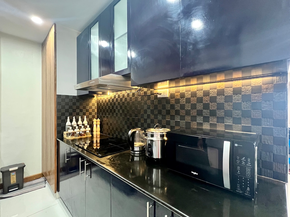 Հաճելի տարածք ՝ աշխատավայրում ծանրաբեռնված օրվանից հետո հանգստանալու և հանգստանալու համար ։ Զգացեք այս ժամանակակից 1 ննջասենյակով կոնդոմինիումի հարմարավետությունն ու հանգստությունը ։ Բնակարանն ունի մոնոխրոմատիկ գունային գամմա ՝ կոփված ապակե միջնորմով և փայտյա մակերևույթներով ։ Վայելեք Netflix - ը հարմարավետ բազմոցում կամ որոշ ժամանակ անցկացրեք պատշգամբում ՝ վայելելու զով քամին և հարմարավետ եղանակը Տագայտայում ։ Կարող եք նաև որոշ ժամանակ անցկացնել ՝ հիանալով Սքայ Լաունջում գտնվող Տաալ լճի հիասքանչ համայնապատկերով ։