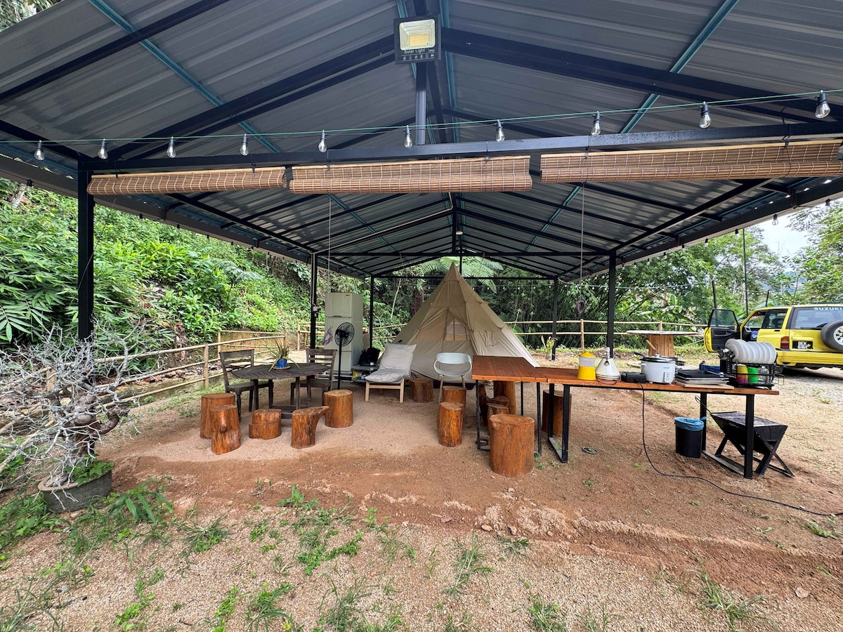 2,5 հեկտար մասնավոր սեփականության վրա կառուցված բունգալո ՝ մասնավոր գետից օգտվելու հնարավորությամբ ։ Հարմարությունները ներառում են խորովածի փոս, Android հեռուստացույց, կարաոկեի հավաքածու և մինի խարույկի տարածք ։ Մեր տարածքը գտնվում է Պուլաու Սանտապի մոտակայքում, որն առաջարկում է ATV վարձակալության ծառայություններ ։ Մոտակա հարմարավետ խանութը ՝ Agrobazaar Rakyat - ը, գտնվում է մոտ 10 րոպե հեռավորության վրա ։ Այնտեղ կգտնեք ուտելու շատ տեղեր ։