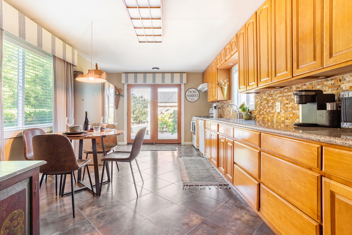 Ամբողջ ընտանիքով հանգստացեք այս խաղաղ և մասնավոր տանը ՝ մինչև Հեյլդսբուրգի հրապարակ, Մոնտաժ հանգստավայր և Չոր Քրիք/Ալեքսանդր Վելի գինու գործարաններ ։ Թարմացված տունն ունի բաց խոհանոց, երկու ընտանեկան սենյակ և 1,5 մասնավոր հեկտար մակերեսով փայլուն ջակուզի ՝ շրջապատված խաղողի այգիներով և կաղնու ծառերով ։ Հեծանիվով ուղևորվեք դեպի քաղաք կամ անմիջապես դուրս եկեք Չիկիտա Ռոուդից դեպի աշխարհի ամենամեծ հեծանվավազքը: 2,4 մղոն դեպի Մոնտաժ հանգստավայր: 2,5 մղոն դեպի Հեյլդսբուրգի հրապարակ: Բարի գալուստ Գինու երկիր