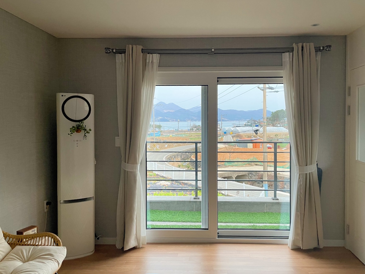 Հեռվում երևում են ծովն ու կղզին, իսկ տան հետևում սոճու անտառով լեռ է ։ Այն գեղեցիկ ամառանոց է ՝ գեղեցիկ պարտեզով, կոկիկ հյուրասենյակով և գյուղական հինոկի լոգարանով, որտեղ կարող եք վայելել տաք լոգանք ՝ նայելով տանիքի լուսնին, աստղերին և լեռներին ։ Այստեղ մնալը բուժիչ է ։ The Bada.. Դա լավագույն վայրն է հանգիստ հանգստանալ ձեր սիրելիների. ■ Պարկուճով սուրճը (1 բաժակ մեկ անձի համար) տրամադրվում է որպես ողջույնի խմիչք Խորովածի ■ համար մանղալը (մետաղալարով ցանց), աքցանները, ջահը, ձեռնոցները և այլն տեղադրված են անվճար, այնպես որ պարզապես անհրաժեշտ է գնել փայտածուխ: ■ Netflix հաշիվը միացված է, այնպես որ կարող եք դիտել այն Ջուկրիմ Նոր քաղաքից մեքենայով մոտ 10 րոպե հեռավորության վրա է (գտնվում է Միջքաղաքային ավտոբուսային տերմինալում, E - Mart )։ Խոշոր զբոսաշրջային տեսարժան վայրերը (Jungang Market, Dongpirang, Luge, ճոպանուղի) տևում են 25 -30 րոպե ։