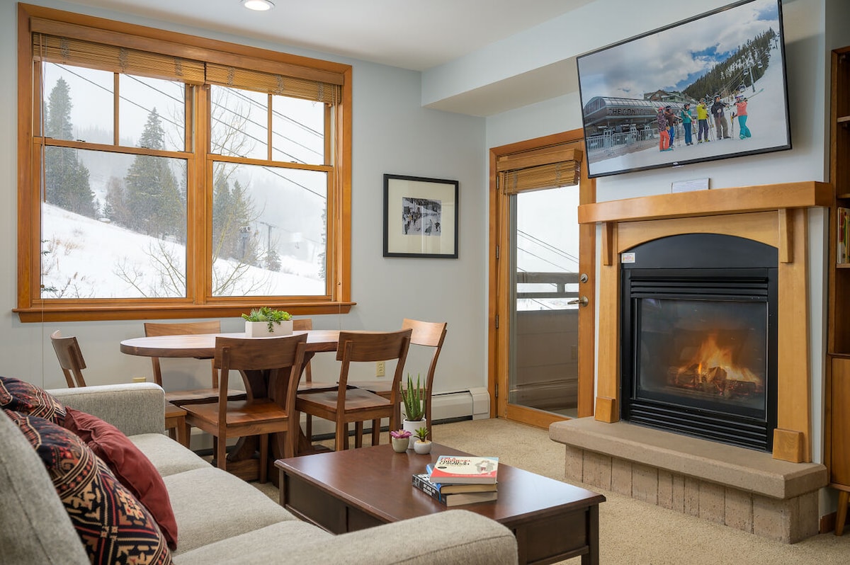 You'll feel right at home at the hearth of this updated condo. You'll be on the slopes in 2 bus stops with pickup just outside. On Main Street, across from Cooper Creek and the Rendezvous Event Center, the town awaits. Host family style feasts with the fully equipped kitchen and dine up to nine. Relax in the hot tubs, on the huge couch by the big screen digital cable TV with streaming services, on the deck and in the hot tubs. Decadent Cal King bed in master. Ski lockers by the elevator.
