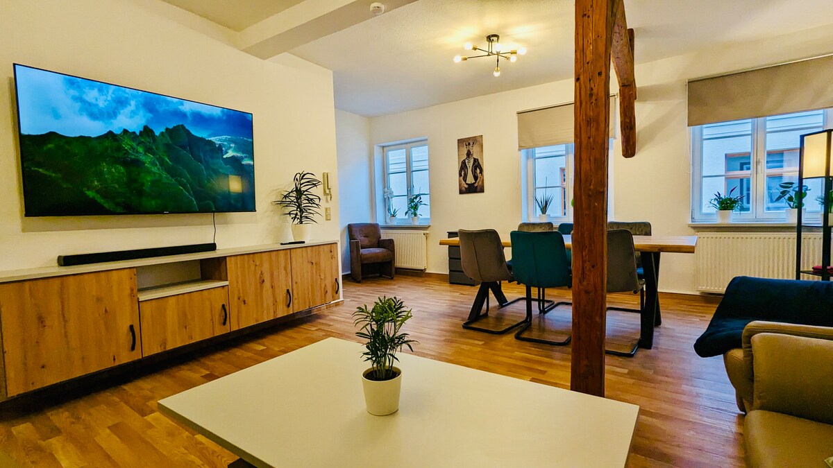 Բարի գալուստ Արնշտադտի սրտում գտնվող մեր անկրկնելի տոնական բնակարան ։ Սեփական մուտքով այս ժամանակակից և բոլորովին նոր կահավորված բնակարանն առաջարկում է յուրահատուկ տոնական փորձառություն ։ Բնակարանի գտնվելու վայրը հենց Առնշտադտի կենտրոնում իդեալական ելակետ է դարձնում բոլոր նրանց համար, ովքեր ցանկանում են ուսումնասիրել քաղաքը և հարակից տարածքը կամ աշխատել այստեղ: Ըստ էության, այն տեղադրված է մինչև 8 հոգու համար նախատեսված 3 հարկերում ։ Կա մեքենայի կայանատեղի ։