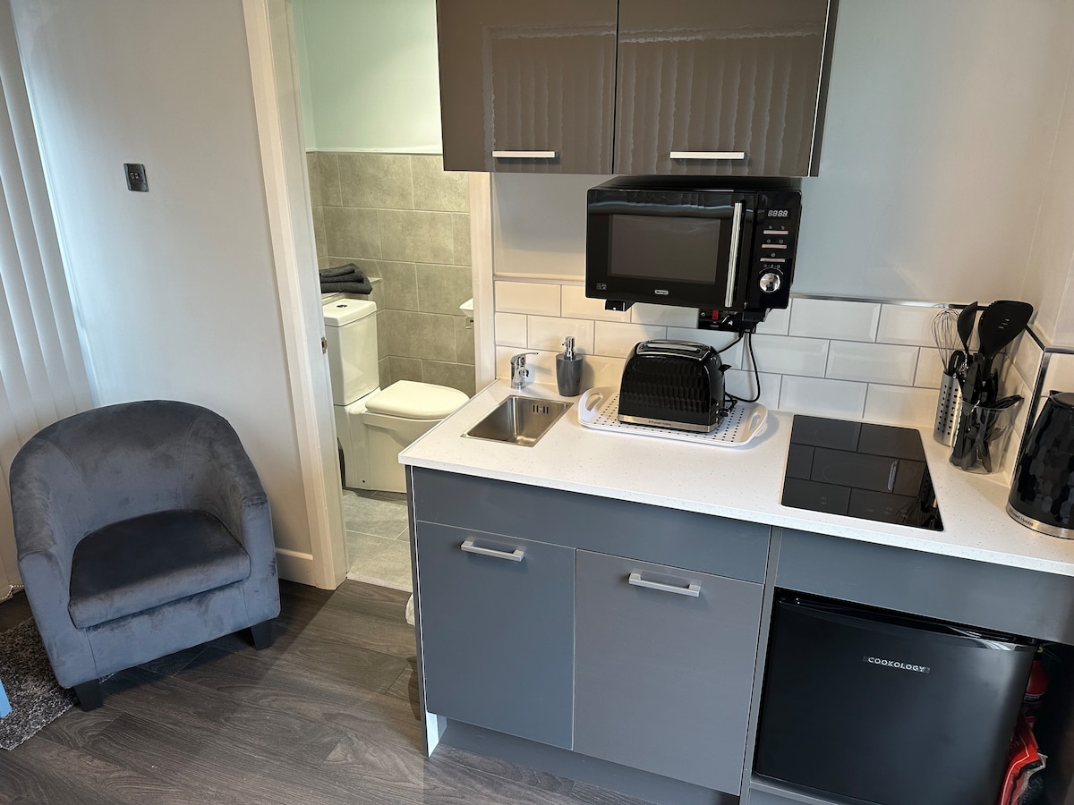 A centrally located, well maintained & inviting studio apartment with free parking. This cosy annex is just 15 mins walk from Molineux Stadium & Wolverhampton City centre, offering easy accessibility to local places of interest and amenities. The annex is opposite a beautiful park with pubs, restaurants, takeaways, supermarkets & convenience stores within a short walking distance. Please contact for booking dates 3 months or more in advance.