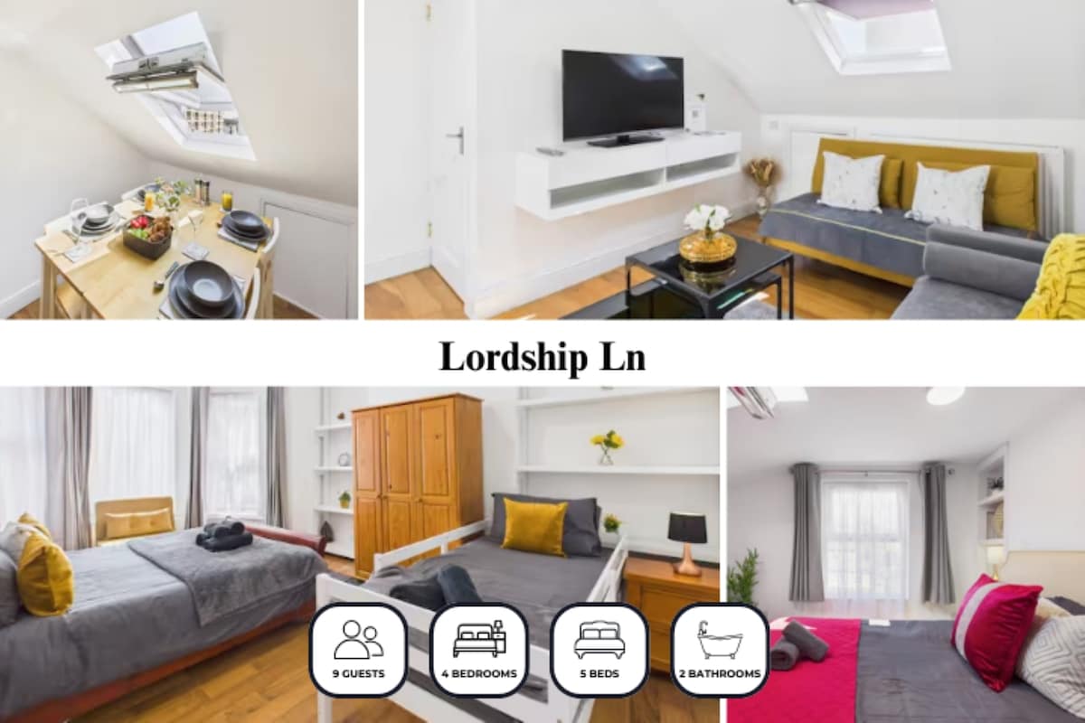 Այս տարածքի մասին ✔️ 4 սենյականոց ընդարձակ տուն Հյուսիսային Լոնդոնում ✔️Մինչև 9 հյուրի համար, իդեալական ընտանիքների և խմբերի համար ✔️Ժամանակակից բնակելի տարածք, լիովին կահավորված խոհանոց և առանձին աշխատանքային տարածք ✔️Ժամանց Xbox-ով հանգստի ժամանակ ✔️2 րոպե քայլելու հեռավորության վրա է Պիկադիլլի գիծը, որտեղից հեշտ է հասնել Լոնդոնի կենտրոն ✔️ Մոտակայքում սրճարաններ, զբոսայգիներ և խանութներ Հարմարավետ, հարմար կապերով հյուսիսային լոնդոնյան տուն, որը կատարյալ է խմբային այցերի, ընտանեկան ուղևորությունների կամ երկարաժամկետ ամրագրումների համար։