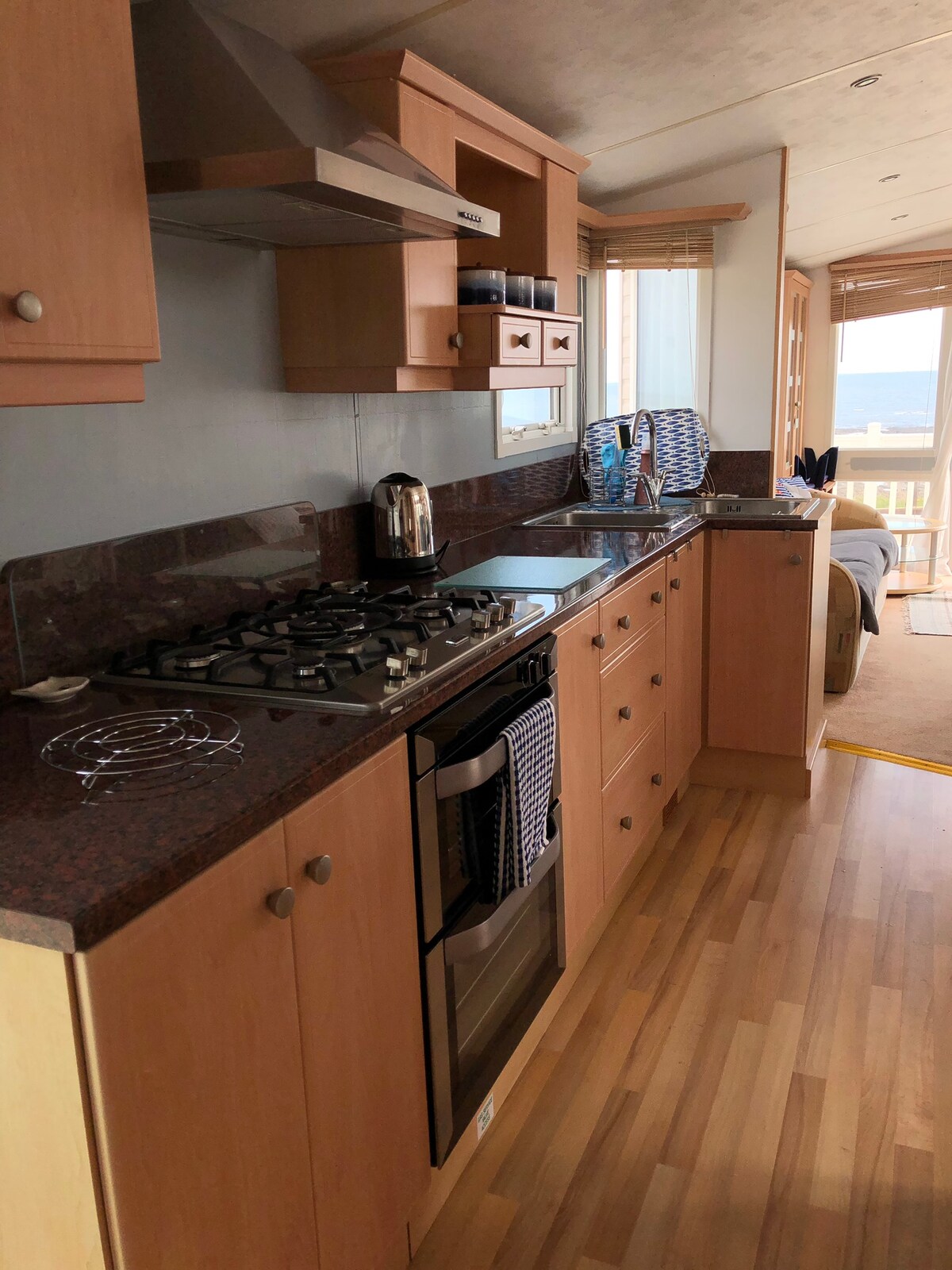 This beach themed caravan is the perfect get away, with the most amazing panoramic coastal views to sit back & relax to on the decking, with great sunrise & sunsets. Fully equipped kitchen, double bed room with en-suit bathroom which has a bath so you can have a great relaxing bubble bath after walking on the beautiful beaches, it also has a separate toilet with shower, centrally heated & double glazed. It is a stones throw away from the High Street with lots of restaurants & pubs to try