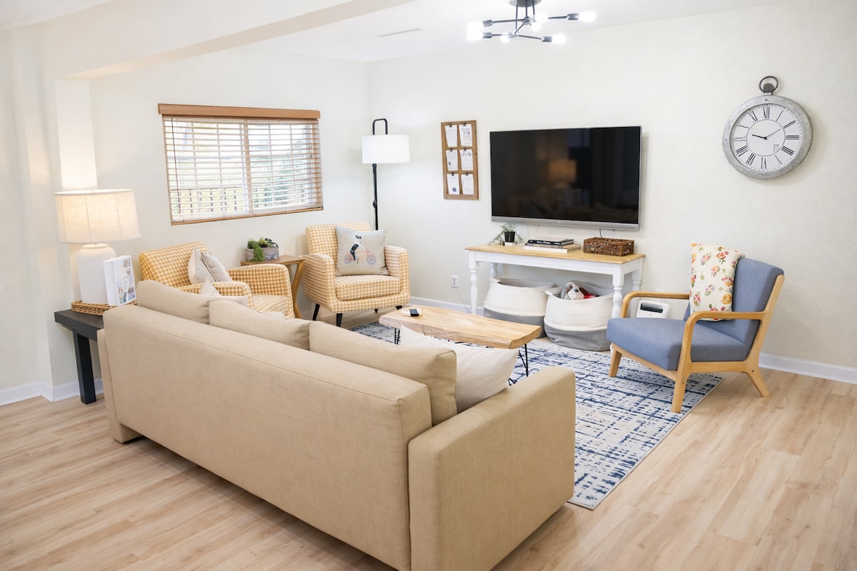 Մնացեք անվտանգ թաղամասում գտնվող մեր հարմարավետ քոթեջում ։ =) •✨Լավագույն գնահատված մաքրությունը •✨էլեկտրական բուխարի •✨Գեղեցիկ քայլելու արահետ •✨Խաղալիքներ, բարձր աթոռ, փաթեթավորեք և խաղացեք ներքնակով, մանկասայլակով և շարժական լոգասենյակով ՝ ըստ պահանջի • հատուկ կարիքներով անձանց համար✨ հարմարություններ ունեցող հաշմանդամություն Դուպլեքսը կողային և առջևի հարկաբաժին է, չունի ընդհանուր պատեր և հիմնական մակարդակ ՝ սեփական շքամուտքով ։