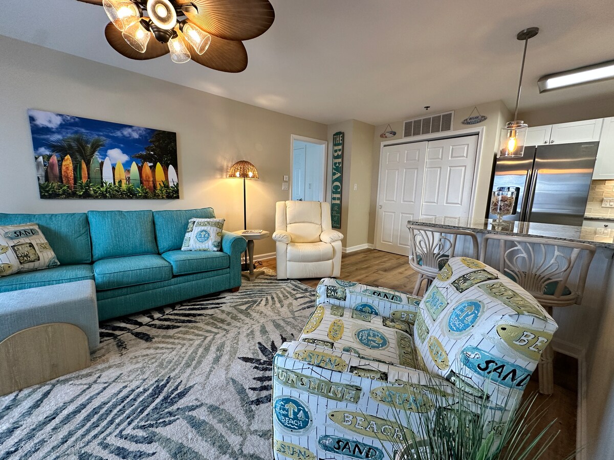 Գեղեցիկ վերանորոգված կոնդոմինիում՝ լվացքի մեքենայով/չորացնիչով, լողավազանով և լողափին ուղղակի ելքով։ Լավ կահավորված խոհանոցն ունի այն ամենը, ինչ անհրաժեշտ է Keurig - ում ձեր առավոտյան սուրճի բաժակը եփելու և ձեր բոլոր սիրած կերակուրները պատրաստելու համար: Հյուրասենյակում մեծ ՀԱՐՄԱՐԱՎԵՏ հատվածը կատարյալ վայր է ձեր սիրած շոուները սմարթ հեռուստացույցով դիտելու կամ հեռարձակելու համար ։ Հավաքվեք ճաշասեղանի շուրջ և զվարճացեք սեղանի խաղերով ։ Քայլեք դեպի ծովախեցգետնի գործարան, «Կանաչ կրիա» և այլն ։