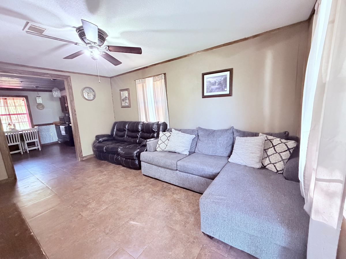 Only a half mile from Village Creek State Park and The Ridges 27-hole golf course, Your Rest at the Ridge offers a quiet alternative to tent or RV camping while you enjoy multiple hiking trails, biking, horseback riding, or the most beautiful golf course to play in the area. Home has 2 bedrooms and 2 bathrooms with a fire-pit off the back deck. The kitchen will provide you with everything you’ll need to cook, as well as a charcoal grill on the back deck.