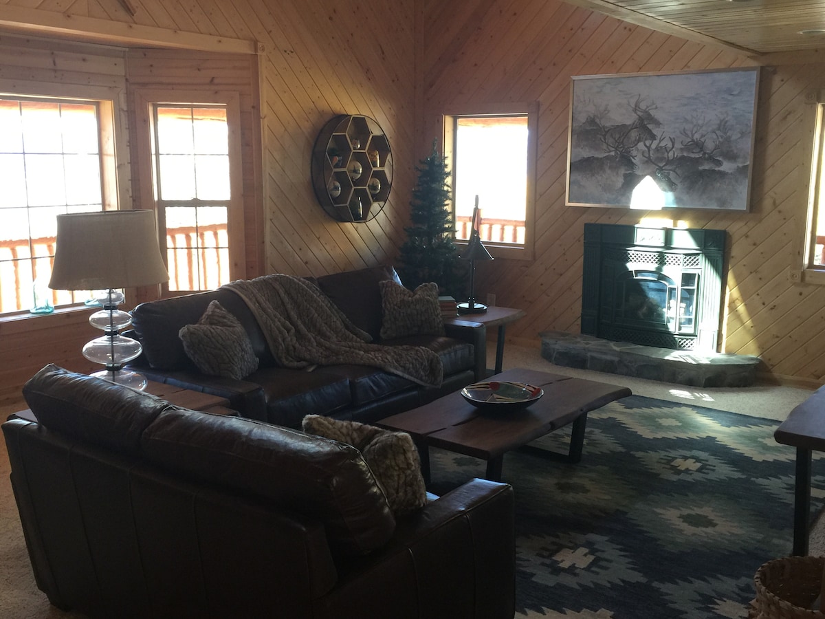 Այս ընդարձակ լեռնային հանգիստը գյուղական հմայքը համադրում է ժամանակակից հարմարավետության հետ: Լոֆթապատ գլխավոր ննջասենյակում կա մեծ մահճակալ, ինչպես նաև հյուրասենյակում բազմոցի 3 ննջասենյակ ։ Վայելեք լիովին կահավորված խոհանոց ՝ հիմնական պարագաներով, ամանալվաց մեքենայով և ճաշասեղանով ։ Հանգստացեք հոսանքի մոտ գտնվող թրջվող լոգարանում, ցնցուղարանում կամ կրակակետում ։ Համօգտագործվող հարմարությունները ներառում են սաունա, լվացքատուն, քաշային սենյակ և ընդհանուր տարածք ։ Քայլեք դեպի արահետներ, ձկնորսություն և Wagon Box ռեստորան ։ Եղջերուներն ու վայրի հնդկահավերը հաճախ շրջում են այս խաղաղ միջավայրում ։