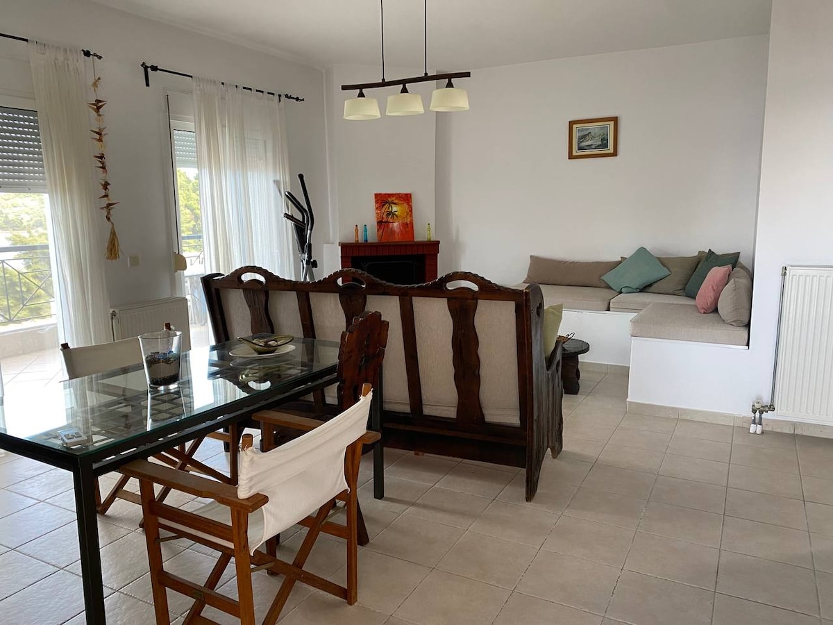 Լիովին վերանորոգված շքեղ բնակարան Nea Skioni - ում, որը գտնվում է հանգիստ վայրում ՝ լողափից 200 մ հեռավորության վրա և ռեստորաններից, սուպերմարկետներից և խանութներից 150 մ հեռավորության վրա ։ Այն բաղկացած է 1 ննջասենյակից ՝ երկտեղանի մահճակալով, սեփական օդորակիչով, լոգասենյակից , լիովին կահավորված խոհանոցից ՝ բոլոր էլեկտրական սարքերով և խոհանոցային պարագաներով, և հարմարավետ հյուրասենյակից ՝ բազմոցով, որը վերածվում է երկտեղանի թախտ, օդորակիչ և արբանյակային հեռուստատեսություն ՝ Netflix - ով ։ Բնակարանն ունի նաև առանձին բացօթյա բակ ՝ ճաշասեղանով, խորովածով և բացօթյա կահույքի հավաքածուով ։