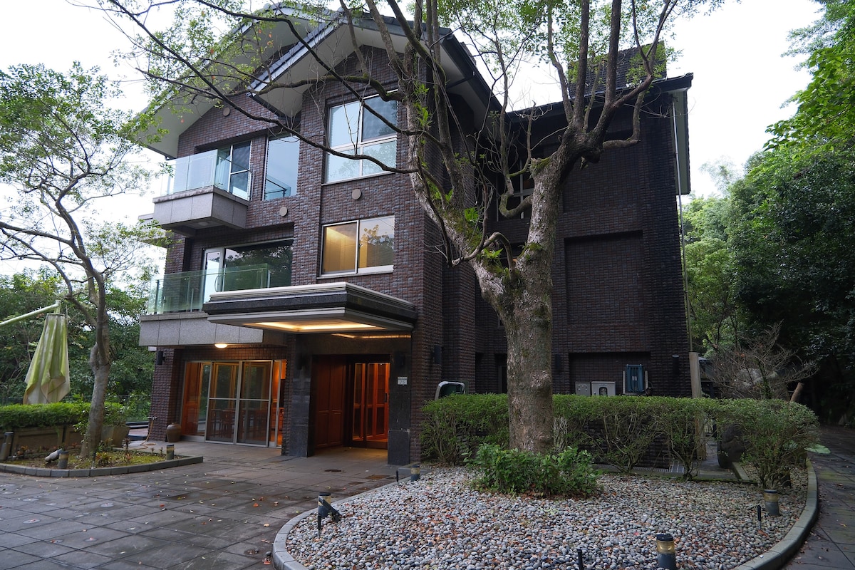 A wheelchair accessible brand new villa featuring all kinds of facilities ranging from rooftop infinity pool, gym, BBQ garden to library, lounge bar, karaoke rooms, chess rooms and parent-child playroom. All kinds of appliances are readily available, an in room hot spring hub is good for a family of four. A Murphy twin bed is next to the hot spring bathroom, two single beds in the upper attic. 320 yards to bus stop. It takes 16 minutes by bus to MRT terminal of red line Taipei.