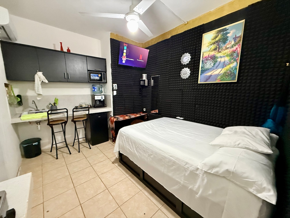 Բնակարան առանձին մուտքով գյուղական տան ներսում, որը շրջապատված է ծառերով և գյուղատնտեսական կենդանիներով (հավեր և 4 շներ)։ Սենյակում կա 190 × 203 սմ մահճակալ, ցանցաճոճ, առանձին լոգասենյակ, Roku հեռուստացույց, AA, ինտերնետ և սեփական խոհանոց՝ սալօջախով, սրճեփով, սառնարանով, բլենդերով և սպասքով։ Տարածքը գտնվում է լագունայից և ավտոբուսային տերմինալից (ADO) մի քանի մետր հեռավորության վրա։ Սեփականությունն ամբողջովին անվտանգ է և ունի մեծ պարտեզ և կայանատեղի։