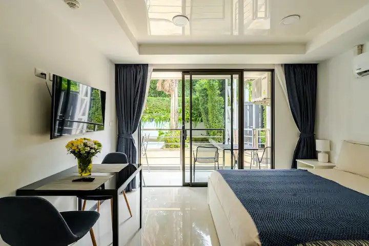 Բարի գալուստ արևադարձային օազիսում գտնվող մեր նորաոճ ստուդիա ։ Վայելեք ընդարձակ պատշգամբ ՝ լողավազանի հանգիստ տեսարանով, որը կատարյալ է հանգստի համար ։ Բնակարանում կա հարմարավետ մահճակալ և լիովին կահավորված խոհանոց ։ Համալիրն առաջարկում է երեք յուրահատուկ լողավազաններ, արևի սպասք, սաունա, համամ և մարզասրահ ՝ շրջապատված փարթամ կանաչապատ տարածքներով ։ Իդեալական է հանգստություն և հարմարավետություն փնտրող զույգերի կամ միայնակ ճանապարհորդների համար ։ Հարմարավետորեն տեղակայված լինելով տեղական լողափերի, տեսարժան վայրերի և ճաշելու մոտակայքում ՝ այն դարձնելով իդեալական ընտրություն ձեր արևադարձային հանգստի համար: