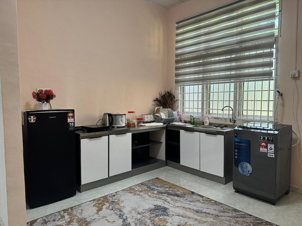 3 Bedrooms Semi D Single Storey House 🛏 Master room: Queen bed attached bathroom + 2 Sejadah ( praying matt ) 🛏 Room 2: Queen bed 🛏Room 3: Super Single bed (Room 2 & 3 share bathroom) 👨👩👧 Comfort for 5, max 8 person 🛋️ Extra floor mattress available upon request (additional charge applies) ❄️ Air-Con in all bedroom + living and dining area 📶 Free Wi-Fi 🍳 Kitchen: fridge, induction cooker, bread toaster, water filter (hot/cold), rice cooker, hair dryer, iron and board