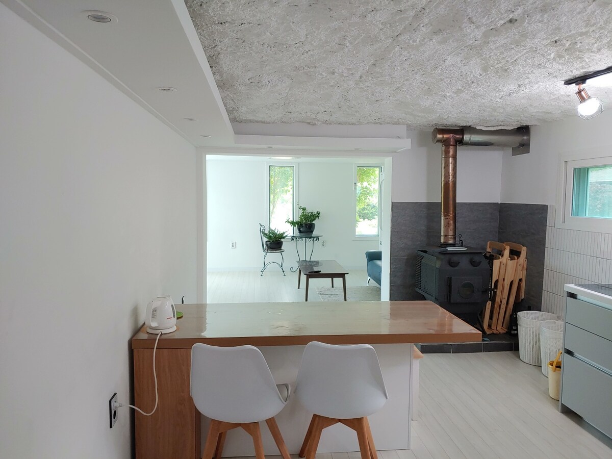 Սա 300 - pyeong մասնավոր տուն է, որը գտնվում է Սեուլի մոտակայքում գտնվող անխռով քոթեջ գյուղում ։ Այն դեպի Նամհյանգ է, այնպես որ առավոտյան արևի լույսը շատ ջերմորեն է փայլում: Այն լավագույն կացարանն է գարնանային բալենիների ծաղիկների, ամառային հովիտների, աշնանային սաղարթների, ձմեռային ձյան և չորս սեզոնների համար: Մաքուր և մինիմալիստական կացարաններ տրամադրելու համար ուզում ենք հյուրերի առավելագույն թիվը սահմանափակել մինչև 3 - ով ։ 2 տարեկանից փոքր մանուկների հետ այցելելիս առավելագույնը 4 հոգի է ։ Հյուրերը կարող են ինքնուրույն օգտվել երկհարկանի տան և այգու ամբողջ առաջին հարկից ։ Սեփականատերն ապրում է երկրորդ հարկում, իսկ տան մուտքն առանձին է, այնպես որ կարող եք առանձին ժամանակ անցկացնել ։ Սա մի թաղամաս է, որտեղ հավաքվում են հանգիստ տներ, ուստի այն լավ կացարան է նրանց համար, ովքեր վայելում են անխռով հանգստի ժամանակը ։ [Բարբեքյու] Կարելի է պատրաստել կանգնած մանղալ + գրիլ, իսկ լրացուցիչ արժեքը կազմում է 15 000 վոն ։ [բուխարի] * Բուխարին սկսում է սկսվել սեզոնի ընթացքում, երբ ջերմաստիճանը սառչելուց ցածր է ։ * Բուխարին հրդեհի վտանգ է ներկայացնում, և ծուխը կարող է տարածվել ներսում, այնպես որ տանտերն ինքն է ծխելու այն ~