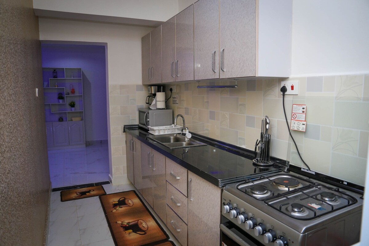 Ամբողջ ընտանիքով հանգստացեք այս խաղաղ վայրում...Դեկորը ձեզ հանգստացնող տրամադրություն կպարգևի: բաց խոհանոց ,լավ կահավորված ։ լավ լուսավորված և շատ մաքուր, Հեռացող սենյակի պատշգամբը բաց է մաքուր օդով լավ մատնահարդարված շատրվանի համար: մենք կենտրոնացած ենք դեպի Վեսթլենդ, վերին բլուր,CBD և karen: Հեշտ հասանելիություն այնպիսի դպրոցների, ինչպիսիք են Braeburn - ը, ֆրանսիական դպրոցը, Riara - ն: Անվտանգությունը բարձրակարգ է, մենք գտնվում ենք Կիլիմանիի ոստիկանական բաժանմունքից 3 կմ հեռավորության վրա: