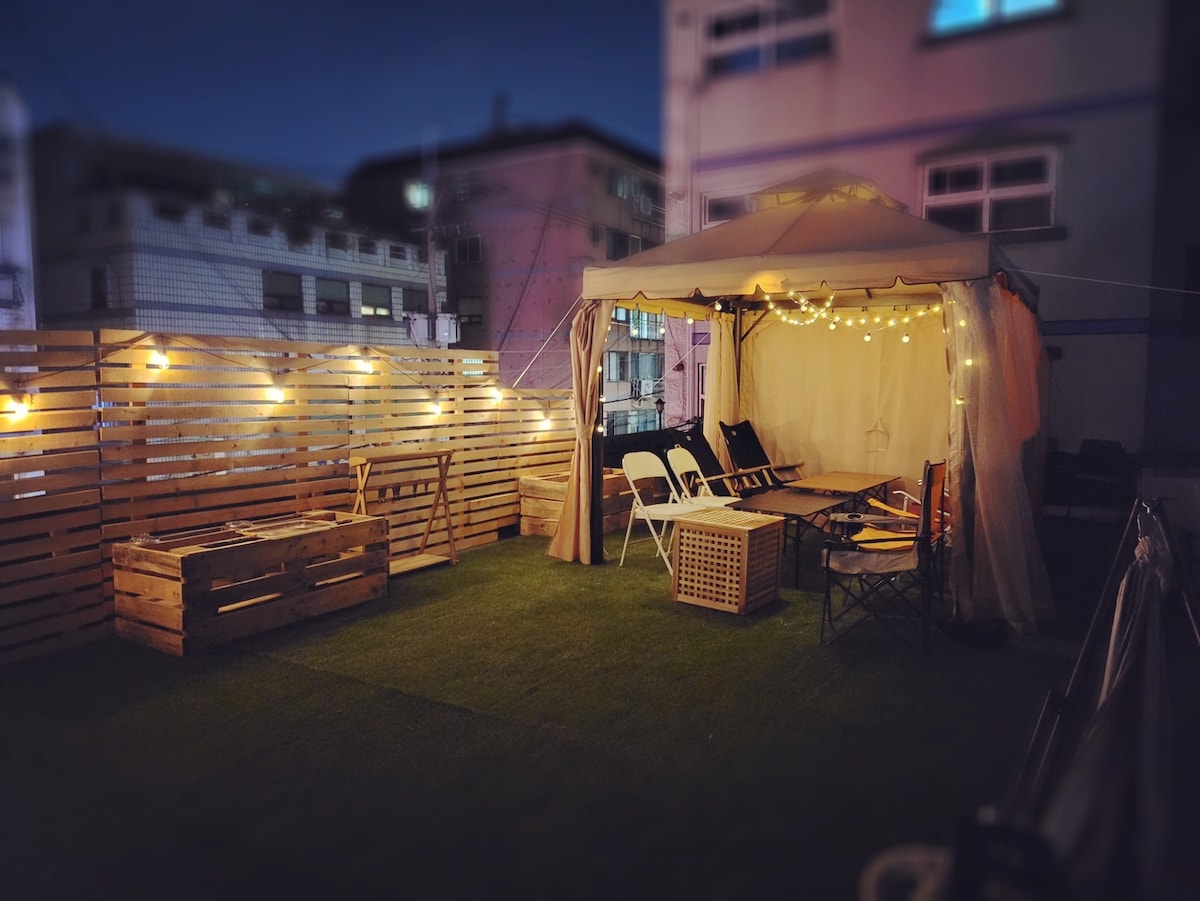 강남 루프탑 글램핑 감성 숙소(베드룸2, rooftop, barbecue,Netflix)