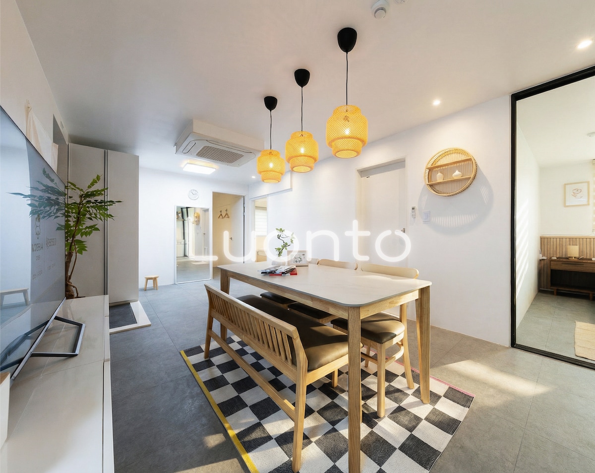 Վայելեք Under Cloud-ի խաղաղ և հարմարավետ միջավայրը՝ ընդարձակ 50 մ² տուն, որն ունի երկու հմայիչ ննջասենյակ, աղյուսով երեսպատված հյուրասենյակ, գեղեցիկ խոհանոց և լոգասենյակ, լրացուցիչ պահարան և հարմարավետ պատշգամբ՝ ցանցաճոճով։ Հանգիստ, բայց հարմարավետ տարածքում, որտեղից հեշտ է հասնել Սեուլի լավագույն վայրերին և օդանավակայանին։ Սեղմեք «Ցույց տալ ավելին»։ ☛ Ոտքով Հոնդե՝ 15 րոպե | Հապջոնգի կայարան(2/6-րդ գիծ)՝ 8 րոպե | 2 առևտրի կենտրոն՝ 5 րոպե ☛ Ավտոբուսով/մետրոյով Ինչհոնի օդանավակայան՝ 50 րոպե | Հին պալատներ՝ 30–40 րոպե | Մյոնդոն՝ 30 րոպե | Կանգնամ՝ 40 րոպե