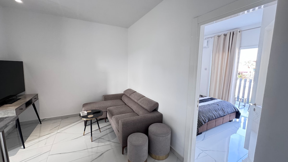 1 - ին հարկի գեղեցիկ բնակարան ՝ վերանդայով և ընդհանուր լողավազանից օգտվելու հնարավորությամբ, որն ամբողջությամբ վերանորոգվել է 2022 թվականի մարտին ։ Բնակարանը նոր կահավորված է 48դյույմանոց հեռուստացույցով և անվճար Wi - Fi - ով ։ Բնակարանն իդեալական է զույգերի կամ մեկ երեխա ունեցող ընտանիքների համար ։ Անվճար կայանատեղի համալիրի ներսում