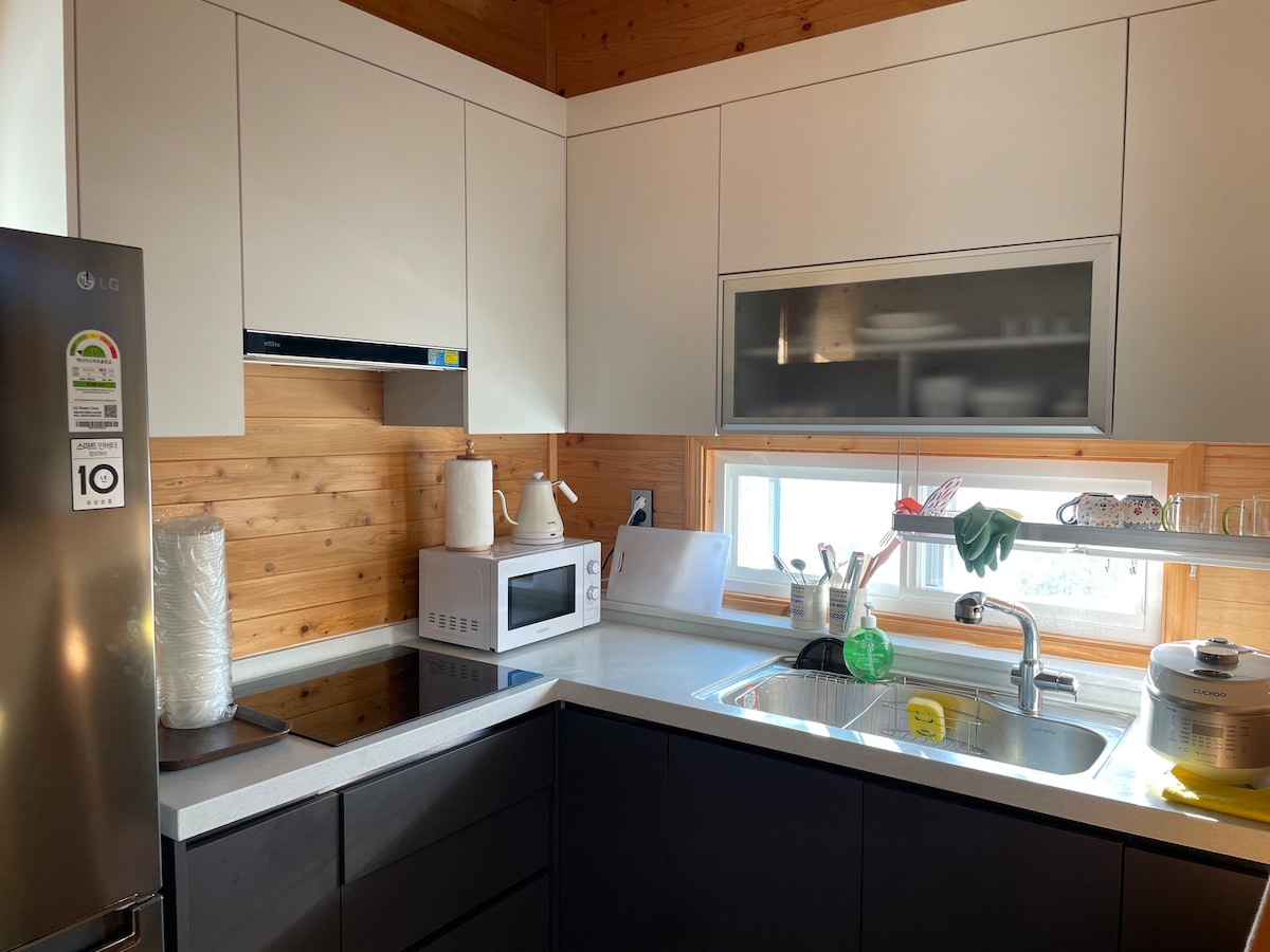 Հեռվում երևում են ծովն ու կղզին, իսկ տան հետևում սոճու անտառով լեռ է ։ Այն գեղեցիկ ամառանոց է ՝ գեղեցիկ պարտեզով, կոկիկ հյուրասենյակով և գյուղական հինոկի լոգարանով, որտեղ կարող եք վայելել տաք լոգանք ՝ նայելով տանիքի լուսնին, աստղերին և լեռներին ։ Այստեղ մնալը բուժիչ է ։ The Bada.. Դա լավագույն վայրն է հանգիստ հանգստանալ ձեր սիրելիների. ■ Պարկուճով սուրճը (1 բաժակ մեկ անձի համար) տրամադրվում է որպես ողջույնի խմիչք Խորովածի ■ համար մանղալը (մետաղալարով ցանց), աքցանները, ջահը, ձեռնոցները և այլն տեղադրված են անվճար, այնպես որ պարզապես անհրաժեշտ է գնել փայտածուխ: ■ Netflix հաշիվը միացված է, այնպես որ կարող եք դիտել այն Ջուկրիմ Նոր քաղաքից մեքենայով մոտ 10 րոպե հեռավորության վրա է (գտնվում է Միջքաղաքային ավտոբուսային տերմինալում, E - Mart )։ Խոշոր զբոսաշրջային տեսարժան վայրերը (Jungang Market, Dongpirang, Luge, ճոպանուղի) տևում են 25 -30 րոպե ։