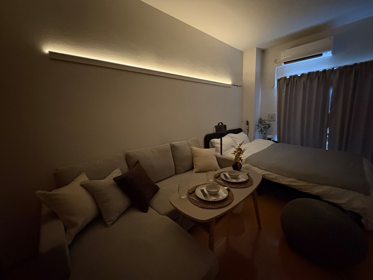 Just 4 minutes from Sangenjaya Station, this hidden-gem Airbnb offers urban convenience and a cozy ambiance. Thoughtfully designed interiors provide serene comfort, with a softly lit dining space for relaxed moments. Perfect for couples and families. - Approx. 10 minutes by train to Shibuya - 4-minute walk to Sangenjaya Station, trendy shops nearby - Many cafes and restaurants nearby - Architect-designed stylish space - Quiet residential area - Two bedrooms, four beds (incl. sofa bed)