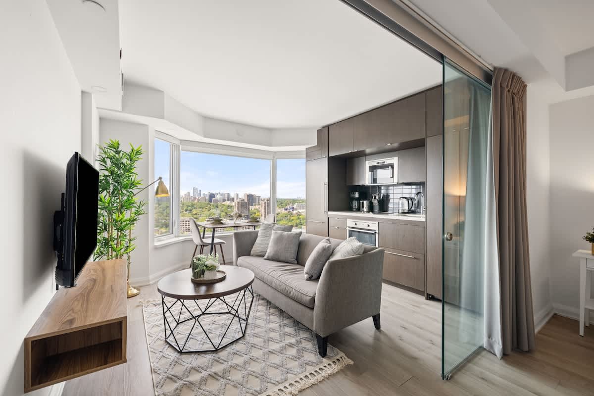 Փորձեք ժամանակակից կյանքը Յորքվիլի սրտում՝ այս լուսավոր, խելամտորեն հարմարեցված լյուքսում։ Այն առաջարկում է մեկ առանձին ննջասենյակ, լրացուցիչ մահճակալ և երկու լավ ձևավորված լոգասենյակ։ Տարածքը հարդարված է նրբաճաշակ նյութերով, ունի Miele ապրանքանիշի բարձրակարգ տեխնիկա, գինու սառնարան, Nespresso սրճեփ և լվացքասենյակ։ Այն տեղավորում է մինչև չորս հյուրի և ունի քաղաքի տեսարանով մասնավոր պատշգամբ։ Բացի այդ, այն գտնվում է լավագույն ռեստորաններից, բուտիկ խանութներից և Տորոնտոյի գլխավոր տեսարժան վայրերից մի քանի քայլ հեռավորության վրա։