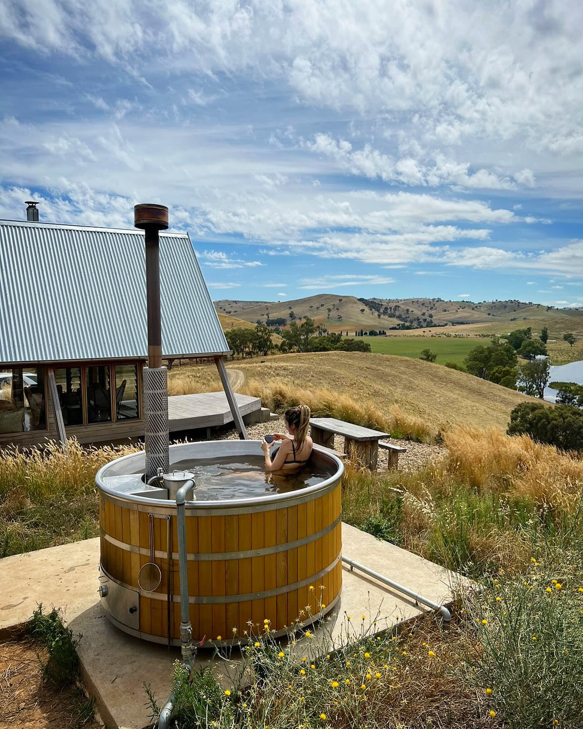Tuckerbox Tiny is located in Gundagai only a few minutes drive from Hume Freeway. It is perfect for a romantic/family getaway or as a quiet and peaceful break on your road trip. Ideally located just out of town, Tuckerbox Tiny is surrounded hills, overlooks Morley’s Creek and picturesque farmland. It feels like a private country retreat but is only 2km to the Main Street, where you can enjoy breakfast at fantastic cafe’s, bakery, museums, antique shops, Carberry Park, supermarket, etc