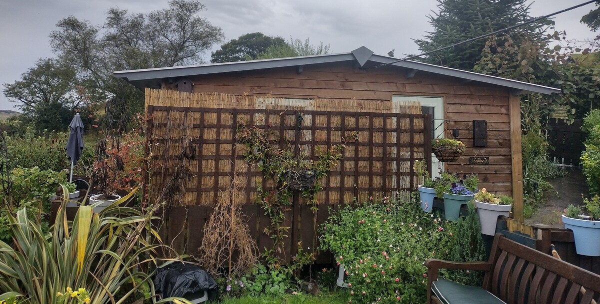 if you want a peaceful getaway. The Sparrows is for you. Its a self contained cabin on a smallholding on top of a mountain with fantastic views. we have recycled all items in cabin, where possible,Its open plan with a double bed, heater, shower room, kitchen area and wifi, water comes from a mountain spring. The Sparrows sits next to the main cottage, shops are 5-8 min drive. Perfect spot for artists ,walkers or for fresh mountain air. many local attractions. there are animals on the property