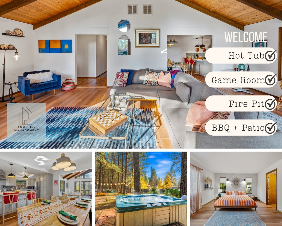 Come and soak under the pines. Our amazing retreat is ideally located less than one mile from downtown Grass Valley and four miles from historic Nevada City. This cozy retreat offers a private outdoor hot tub under the pines, and an outdoor BBQ and dining area. Enjoy wine tasting, taprooms, art galleries, boutiques, and great restaurants. Outdoor lovers will find endless adventures: swimming or fishing in the Yuba River, exploring nearby lakes, or wandering through charming downtown streets.