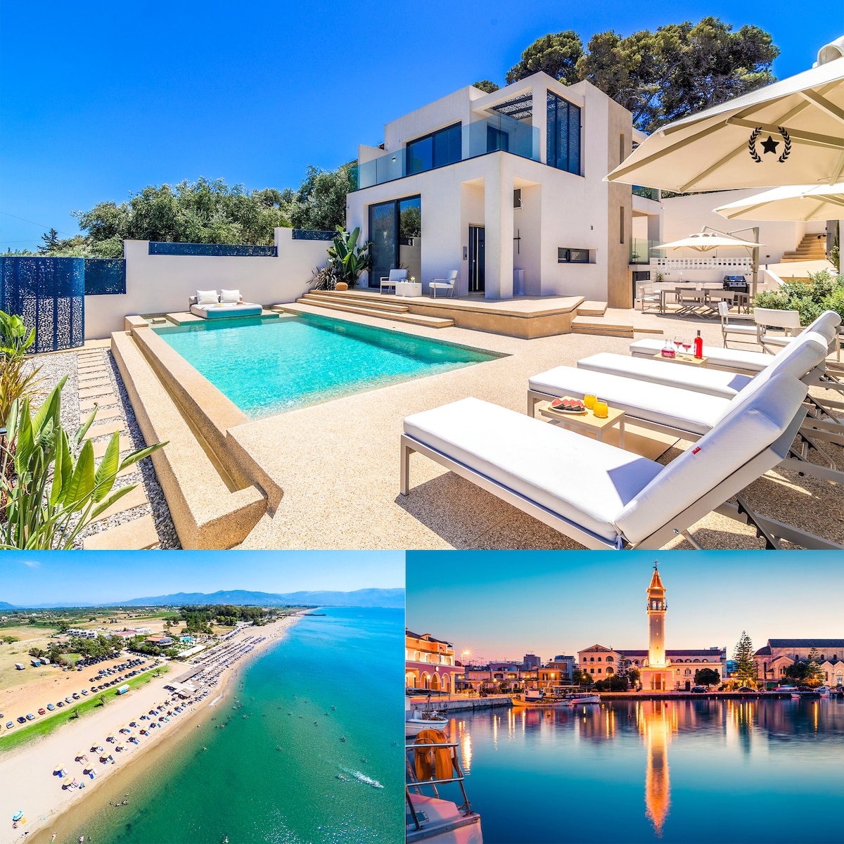 Բարի գալուստ Զակինթոսի սրտում գտնվող ձեր մասնավոր օազիս ։ Հանգիստ լեռնալանջի միջավայրում տեղակայված այս դիզայնով վիլլան առաջարկում է համայնապատկերային տեսարաններ, որոնք ձգվում են կղզու բնական գեղեցկությամբ Վիլլայի յուրաքանչյուր մանրուք մտածված կերպով մշակվել է ՝ ստեղծելով հանգիստ, ոճային մթնոլորտ ՝ հողակտորով ինտերիերից և ձեռակերտ կահույքից մինչև նրբագեղ բաց հատակագծով բնակելի տարածքներ և ներս մտնող ցնցուղներ Գտնվելով կղզու կենտրոնում ՝ դուք գտնվում եք ամենագեղեցիկ լողափերի մոտակայքում