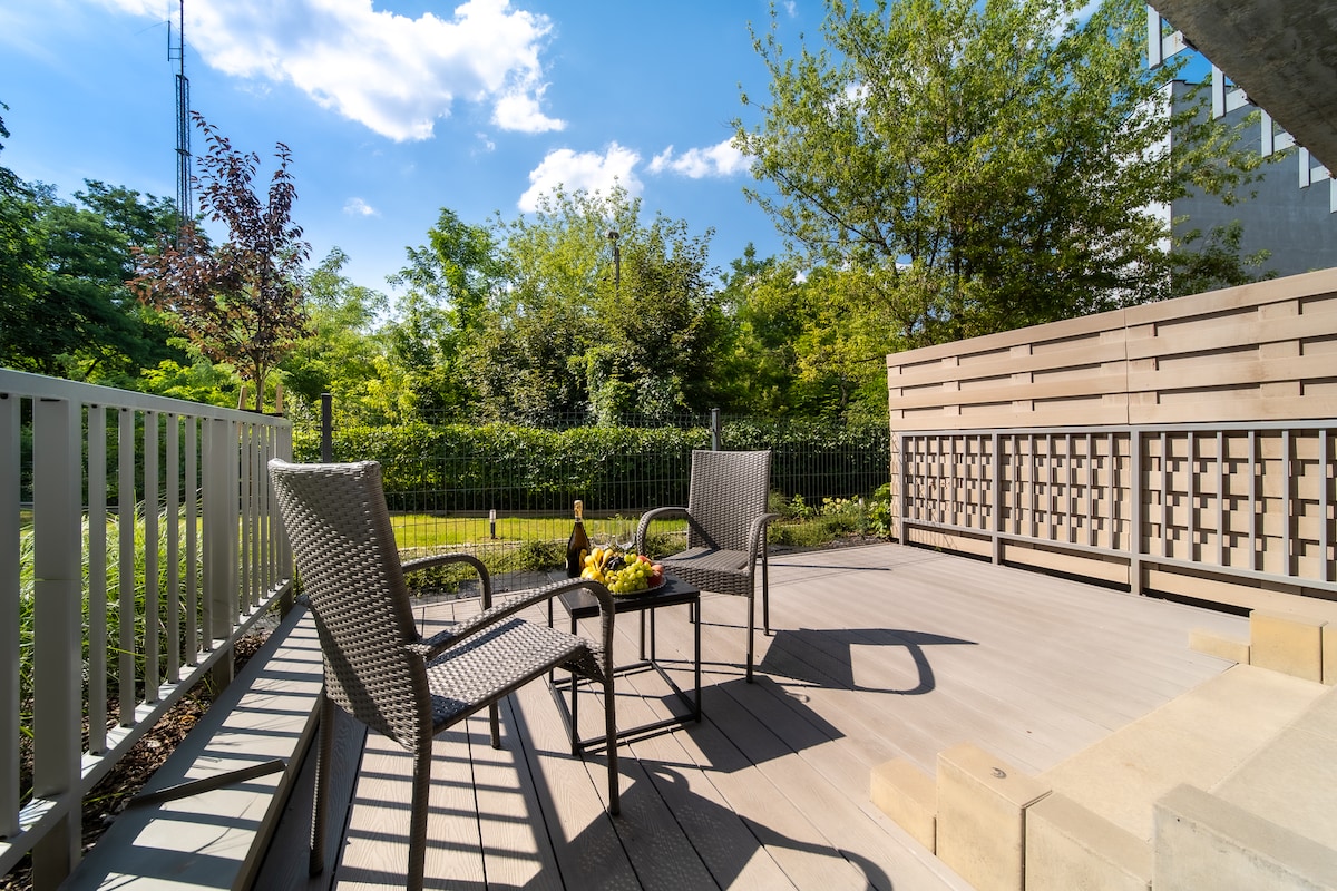 Նորաձև բնակարան ՝ հետնաբակով, որը գտնվում է Կրակովի կենտրոնում ։ Հին քաղաքին, ռեստորանին և երկաթուղային կայարանին մոտ ։ Ստորգետնյա ավտոտնակում մեր հյուրերին հասանելի է առանձին կայանատեղի, որը ներառված է գնի մեջ ։ Բնակարանն ավարտվել է 2022 թվականի կեսերին ։ Բարձրորակ ներքնակն ու լվացքը պրոֆեսիոնալ լվացքասենյակում մեր հյուրին կապահովեն գիշերային հարմարավետ քուն ։ Բնակարանում մենք պատրաստել ենք այնպիսի հարմարություններ, ինչպիսիք են ՝ - telewizor SmartTV - Internet 300Mbps - Կլիմայավարժեցում - ամանալվաց մեքենա - լվացքի մեքենա