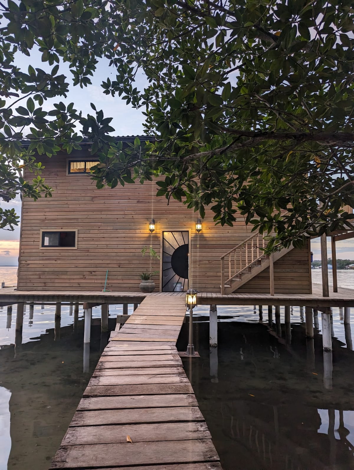 Այս մեկուսի լոֆթ ոճի ծառի տնակը գտնվում է ջրի վերևում ՝ մեր գունագեղ մարջանային խութից 30 ֆուտ հեռավորության վրա ։ Թափանցիկ և ընդարձակ, բայց վրիպակի ապացույց պատերը թույլ են տալիս վայելել օվկիանոսի թարմ քամին և տեսարանները ՝ միաժամանակ ապահով և հարմարավետ պահելով ձեզ: Երբ սահնակը գալիս է այցելելու, նրան տեսնելու համար տնից դուրս գալու կարիք չկա ։ Միացեք մանգրոի, ծովածոցի և ջունգլիների շրջակայքին և վայելեք ջրի և խութի մուտքը ձեր սեփական տախտակամածից: Պայծառ և ընդարձակ, 100% էկոլոգիապես մաքուր ։
