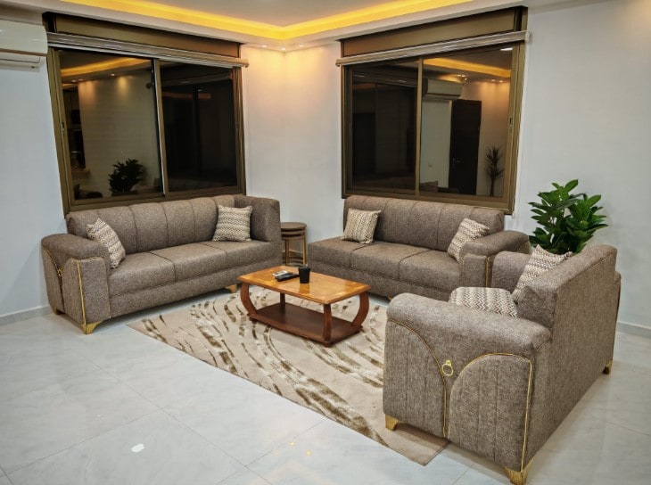 صممت هذه الشقة بأسلوب عصري حيث تجتمع فيها الالوان المريحة والهادئة التي تعطي راحة للمقيم وتتميز بتفاصيل عصرية من الاثاث والاكسسوارات التي تشعرك وتمنحك اقامة سعيده وهادئة لك و للعائلة والأصدقاء ، وبالنسبه للموقع حيث انها تقع في قلب العاصمة الأردنية عمان وتحديدا في عبدون حيث تواجد المراكز التجارية والمقاهي والمراكز الطبية والحدائق والمقاهي والبنوك وغيرها من الأماكن والمرافق التي تلبي احتياجات جميع زوار المدينة أهلا وسهلا بكم من أين ما كنتم welcome to Jordan