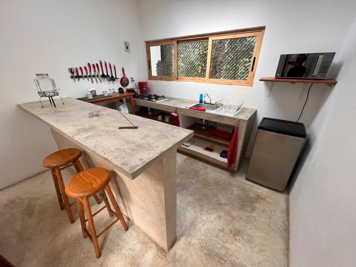 Bienvenido a Ixaya, un loft de lujo diseñado para ofrecer comodidad, privacidad y un ambiente de profunda relajación en medio de la naturaleza de Tepoztlán. Aquí encontrarás un refugio ideal para desconectar: cama King size, jacuzzi privado con calefacción (costo extra), cocina equipada, amplios ventanales y dos jardines exclusivos que llenan cada espacio de luz y serenidad. Ubicado en un fraccionamiento tranquilo y seguro, a solo 12 minutos del centro, podrás disfrutar de su energía única.