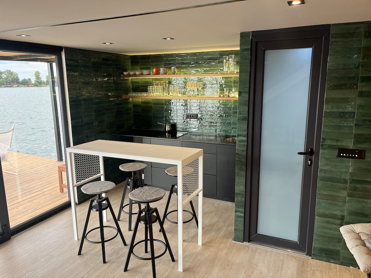 Ճարտարապետորեն ցնցող, լողացող հանգստի տունը գտնվում է Բելգրադի կենտրոնից 30 րոպե հեռավորության վրա և կարող է տեղավորել 6 մարդու ։ Այն ներառում է խոհանոցիկով հյուրասենյակ, վերևում ՝ 1 ննջասենյակ և լոգասենյակ ։ Այս տան հարմարությունները, որոնք կառուցված են ամբողջովին փայտից, ներառում են նաև Wi - Fi, օդորակիչ և կայանատեղի ։ Նստատեղով պարտեզի տարածքը կատարյալ վայր է բնության գրկում և Սավա գետով շրջապատված բարբեքյուով հանգստանալու համար ՝ դիտելով բադերն ու կարապները ։ Մայրամուտի ապշեցուցիչ տեսարան ։