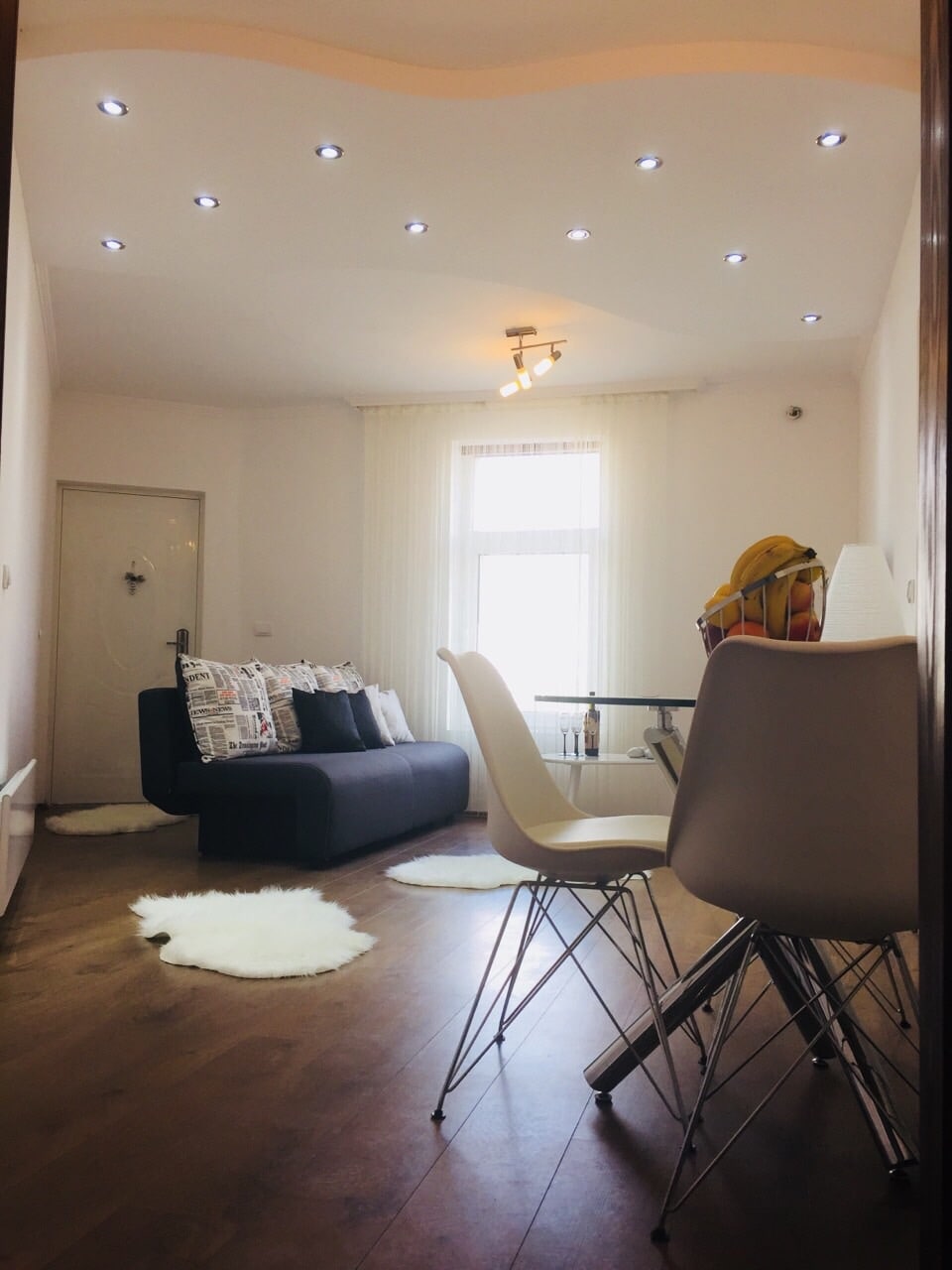 Բնակարանը մի քանի ամիս առաջ ամբողջությամբ վերանորոգված է, և ամեն ինչ նոր է: Ննջասենյակում կա մեծ հարմարավետ երկտեղանոց մահճակալ և մեկ մեծ բազմոց մահճակալ հյուրասենյակում ։ Բոլորը զուսպ LED լույսի. Խոհանոցում կարող եք վայելել ժամանակակից հարթ էկրանով կաթսա, ջեռոց, սառնարան ՝ սառնարանով, ամանալվաց մեքենա և լվացքի մեքենա և մեծ բար ։ Լոգասենյակը ապակեպատ է մարմարե կերամիկայով, այն շատ կոմպակտ է և մաքուր: Լոգասենյակում կա ֆեն, սրբիչներ, հիգիենայի պարագաներ ։