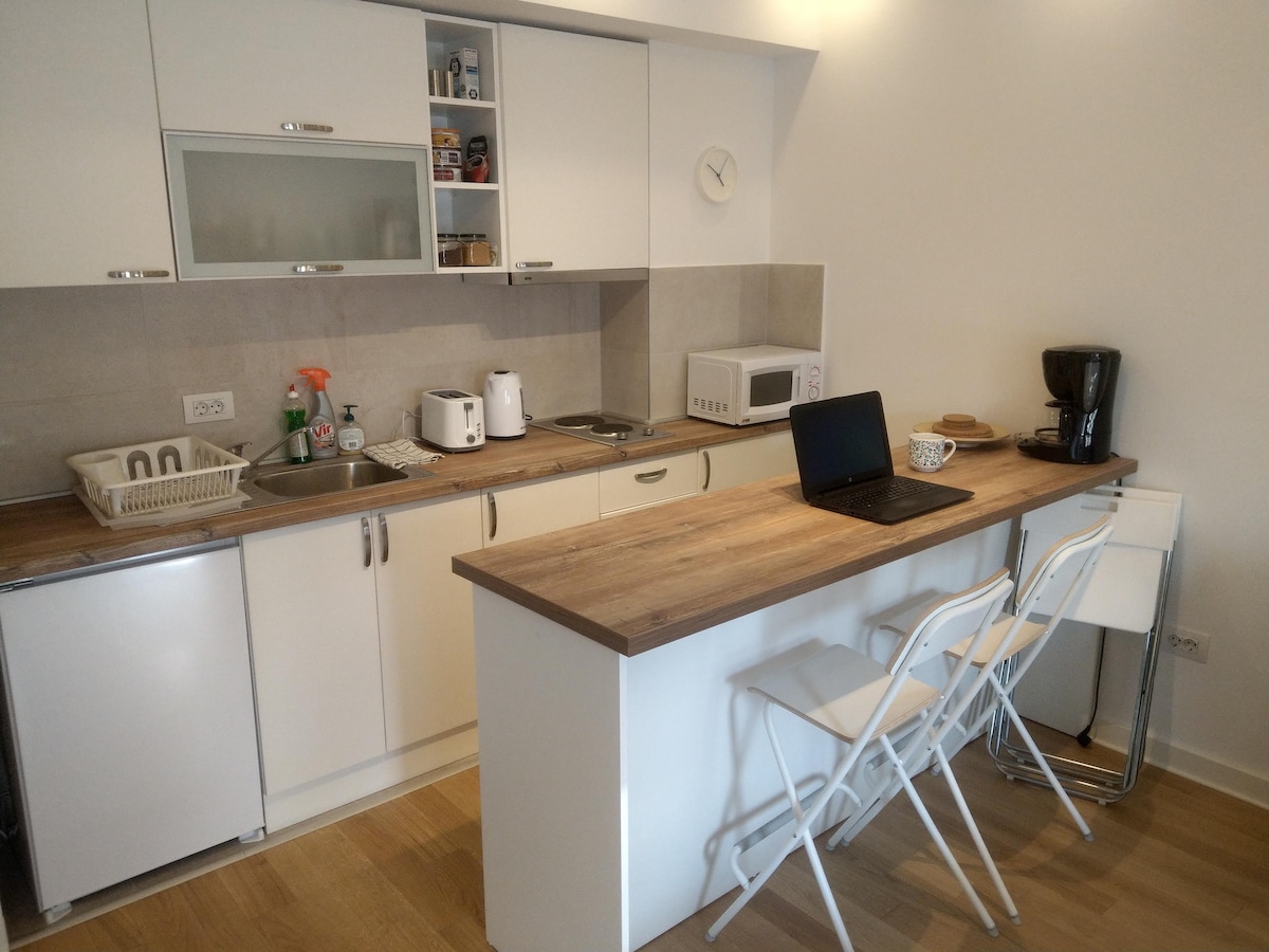 Այս ժամանակակից ստուդիո բնակարանը գտնվում է Բելգրադի սրտում ՝ աշխույժ Կնեզ Միաժլովա հետիոտնային փողոցից ընդամենը 2 րոպե հեռավորության վրա: Այս բնակարանից բացվում են Բելգրադի և Սավա գետի ցնցող համայնապատկերը, որոնք կատարյալ են միայնակ ճանապարհորդողների, զույգերի կամ մինչև 4 հոգանոց փոքր խմբերի համար ։ Անկախ այն բանից ՝ կարճաժամկետ այց եք փնտրում, թե ավելի երկար այց, այս բնակարանն իդեալական է երկուսի համար, ինչը թույլ է տալիս առավելագույնս վայելել Բելգրադում անցկացրած ժամանակը և վայելել իսկապես անկրկնելի փորձառություն ։