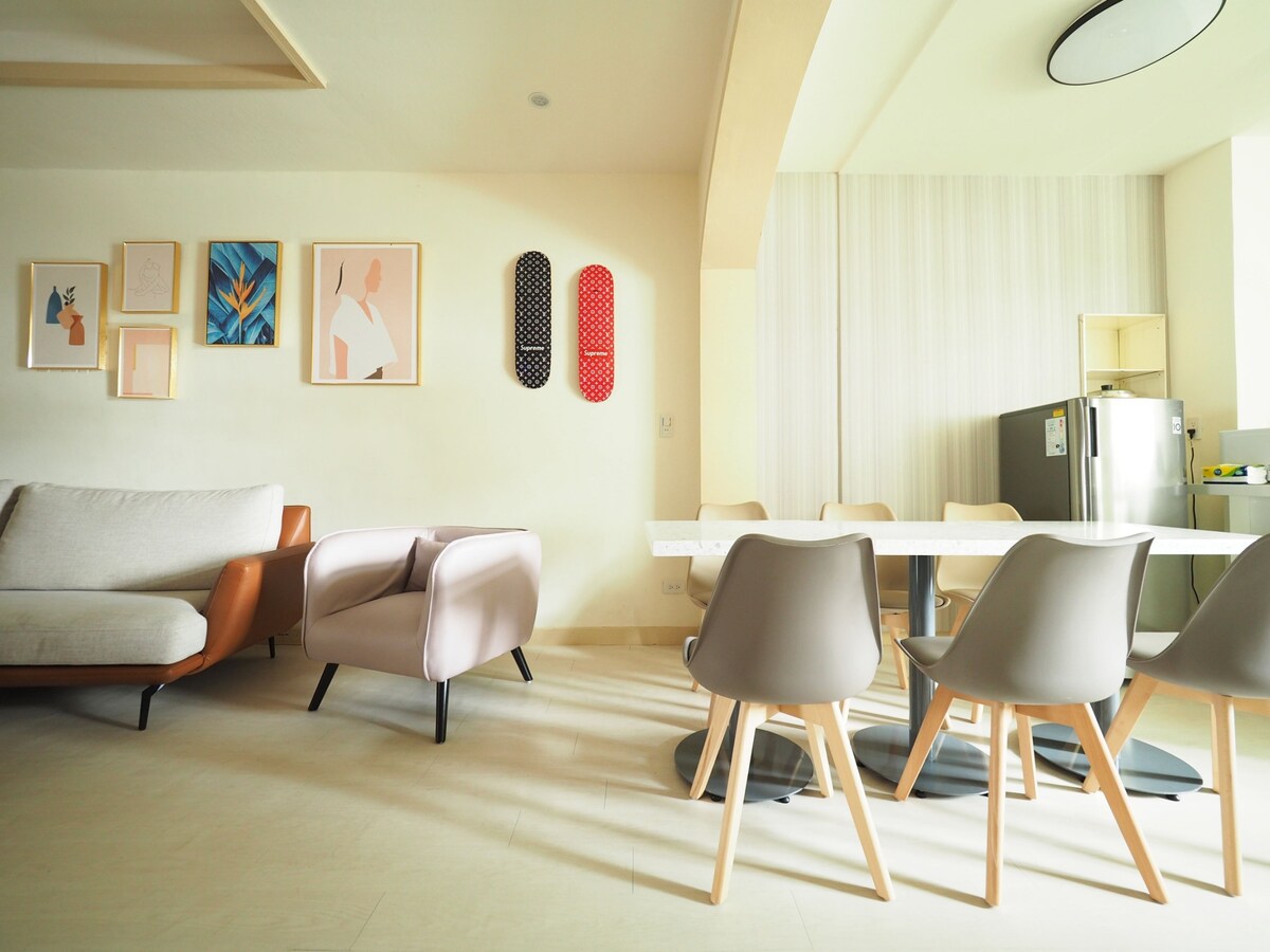 Նոր վերանորոգված, ընդարձակ և հարմարավետ 3 սենյականոց, 2 լոգասենյակով, 2 առաստաղով բնակարան Թայբեյի կենտրոնում։ Երկրորդ հարկում գտնվող այս տունն ունի բոլորովին նոր հարմարություններ։ 1 լայն/2 լայն մահճակալ, գերարագ օպտիկամանրաթելային ինտերնետ և լիովին կահավորված խոհանոց՝ որակյալ տեխնիկայով։ Խաղաղ և անվտանգ թաղամաս, սակայն ընդամենը 10 րոպե քայլելու հեռավորության վրա է Zhongxiao Xinsheng MRT-ից և մոտ է Huashan մշակութային և ստեղծագործական զբոսայգուն։ Մոտակայքում սուպերմարկետ և բազմաթիվ սննդի կետեր կան։ Հիանալի ընտրություն է այն հյուրերի համար, որոնք փնտրում են ընդարձակ, հարմարավետ և քաղաքի կենտրոնից ոչ հեռու տարածք։