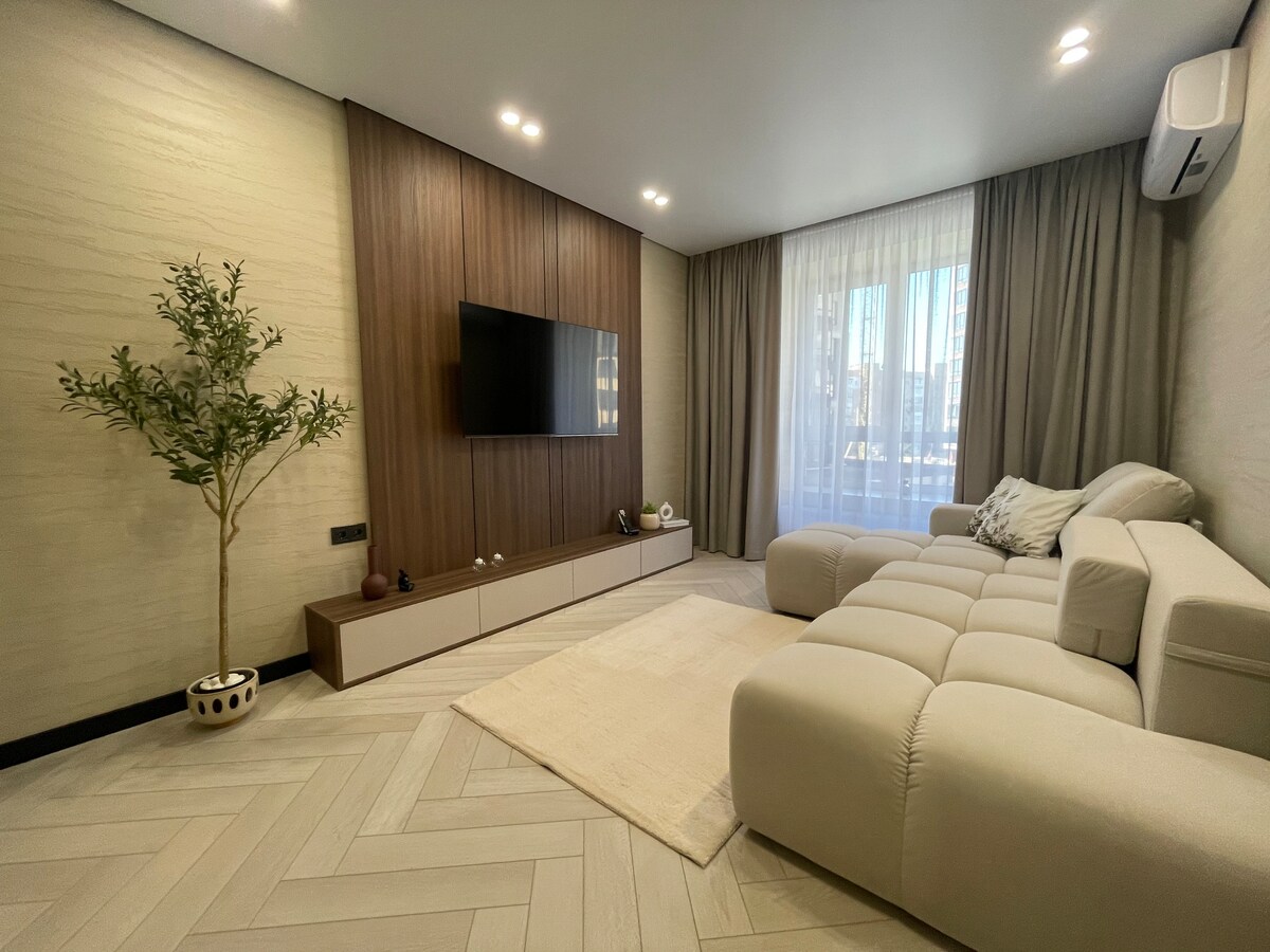 Զգուշացումներ!!!! Երկրում պատերազմ է ընթանում, ուստի հաճախ լինում է լույսի և ջրի անջատում!!!! Այս յուրահատուկ բնակարանն ունի իր ոճը: Պանորամային պատուհանները հնարավորություն են տալիս ցերեկային ժամերին վայելելու քաղաքի տեսարանը և ընթրելու երեկոյան քաղաքի լույսերով: Ամեն ինչ մտածված է և ստեղծված է հարմարավետ կյանքի համար ։ Մասնավորապես, մեծ խոհանոց - ստուդիա, դուք կարող եք պատրաստել համեղ ուտեստներ ՝ վայելելով հետաքրքիր շարքի դիտումը: Առանձին ննջասենյակ ՝ մեծ, հարմարավետ մահճակալով, օրթոպեդիկ ներքնակով ։