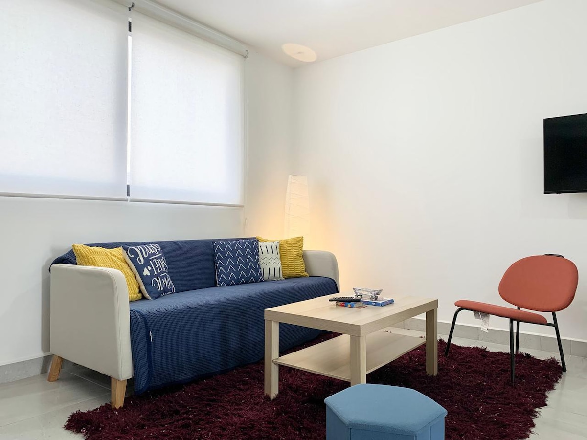 Welcome to your luxury retreat in the heart of modern Querétaro! This charming apartment offers comfort and style in a prime location. Fully equipped kitchen and cozy living room with HDTV. High-speed Wi-Fi and dedicated customer service are available at all times. For your convenience, we have a mini-split in our apartment, making it the ideal place to stay. Book now and make your trip an unforgettable experience!