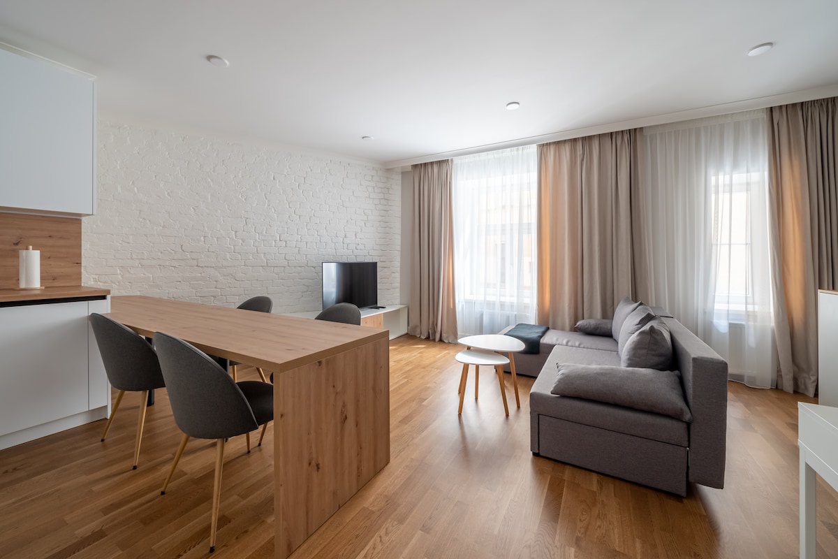 A comfortable and thoughtfully designed studio apartment in Grīziņkalns, located on the third floor of a four-story building. The studio has a functional layout that combines a bright living and sleeping area with a kitchen zone for everyday needs. Very fast internet is available, making it suitable for both short and longer stays. Secure free parking is included in a closed courtyard. The apartment is located between two beautiful parks and just steps away from grocery stores.