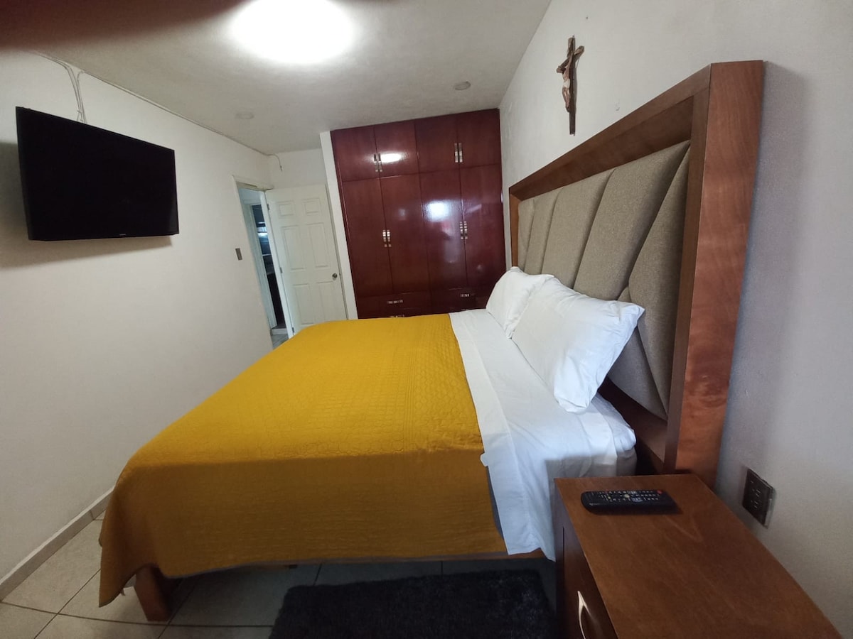 Relájate en este comodo alojamiento donde la tranquilidad se respira. Practico espacio si vienes de negocios o placer, cuenta con estacionamiento privado. En calle principal, frente a farmacias, gasolinera, central de abastos.