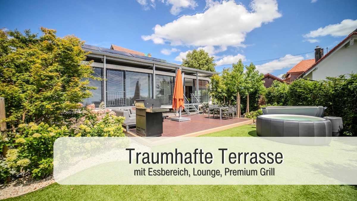 Spanning over 200m², you'll find 7 modern rooms for up to 12 guests. Perfect for families, wedding parties, or business trips. - Huge sun terrace with grill & lounge - Billiard table & home cinema for entertainment - Separate office for productive work - Large, fully equipped kitchen - 3 modern bathrooms - 30 minutes to Zurich and to Lucerne In the heart of nature near the Albis Hill with numerous hiking trails. 5 min. to Türlersee and Park Seleger Moor, ideal for nature lovers too!